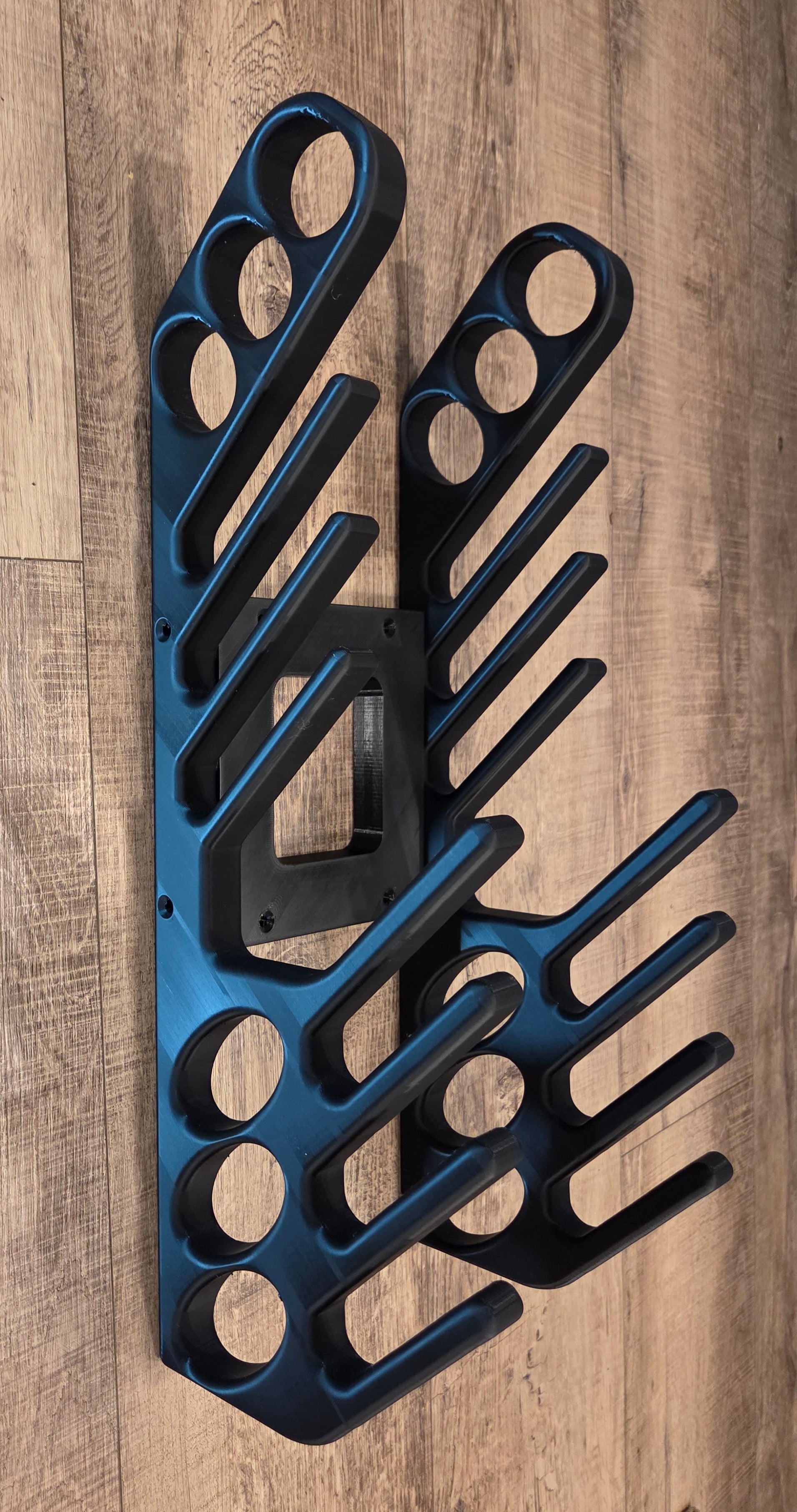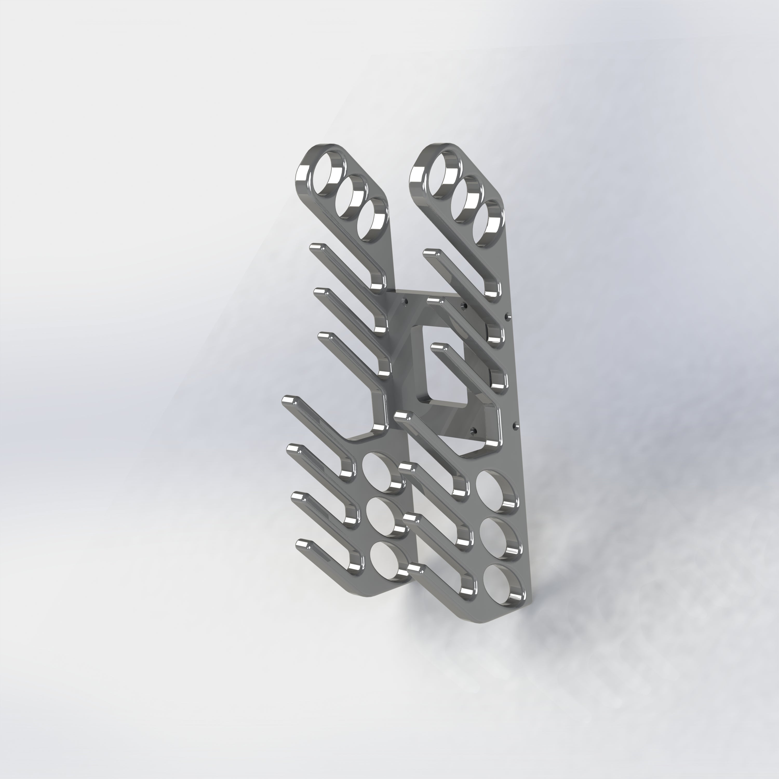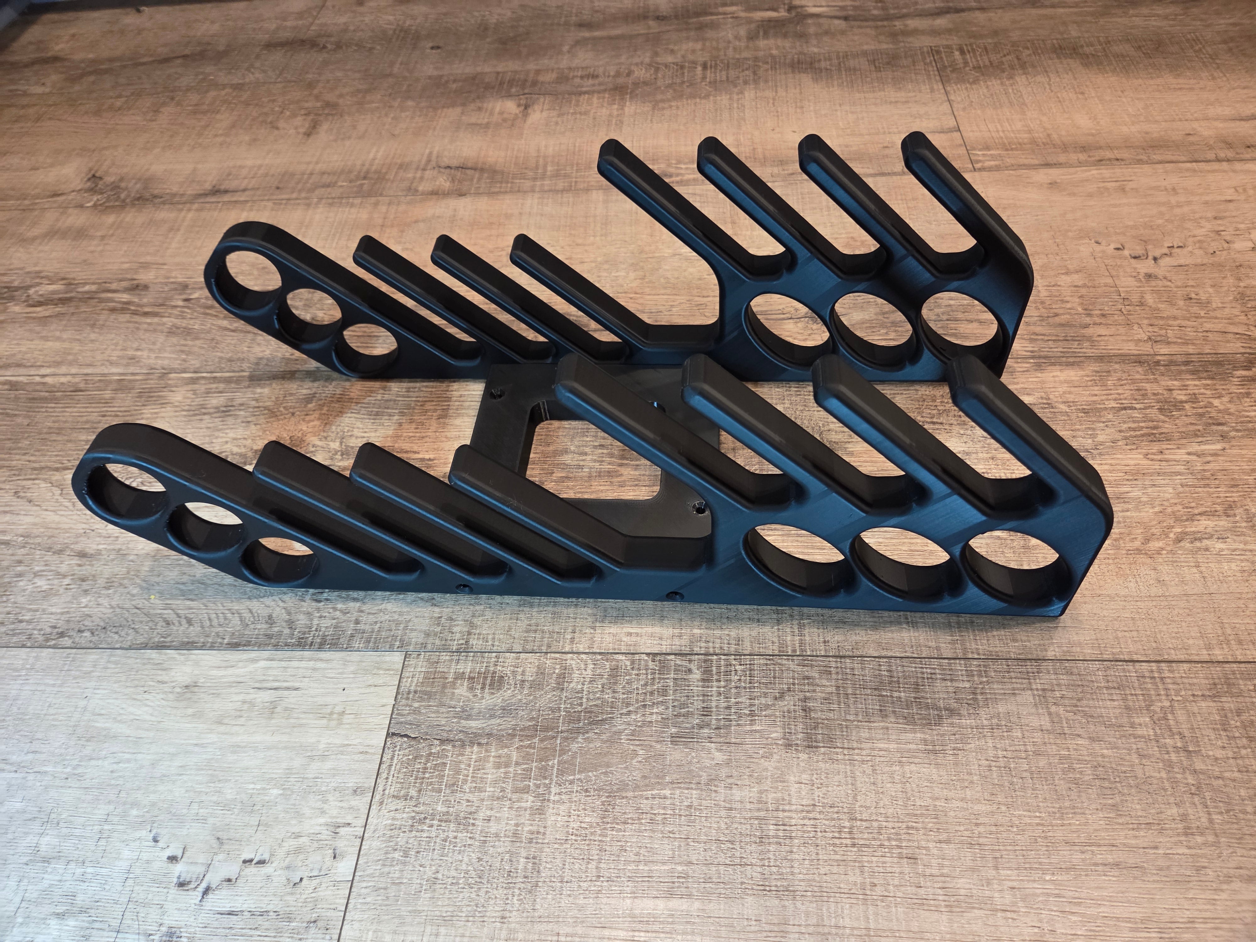 Holds 3 Fuselages (top), 3 Wings with bags (0.95" gap), 3 Masts with bags (0.98" gap), and at the bottom 3 Fuselages or Tails.